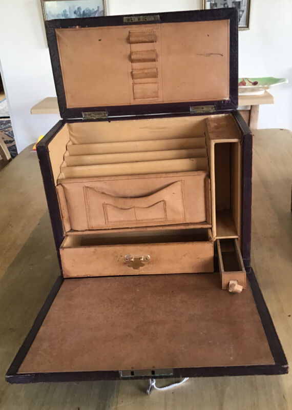 Title (ebay affiliate link): Edwardian Stationery Cabinet Leather With Compartments & Drawers. Lock & Key