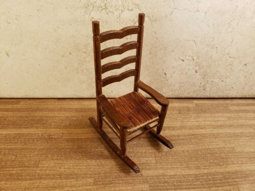 Title (ebay affiliate link): Vintage Dollhouse Miniature Furniture Wood Ladder Back Woven Seat Rocking Chair