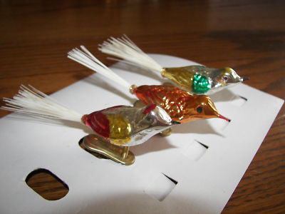 Title (ebay affiliate link): 3 Vintage Glass Bird Ornaments Clip-On W/Brush Tails