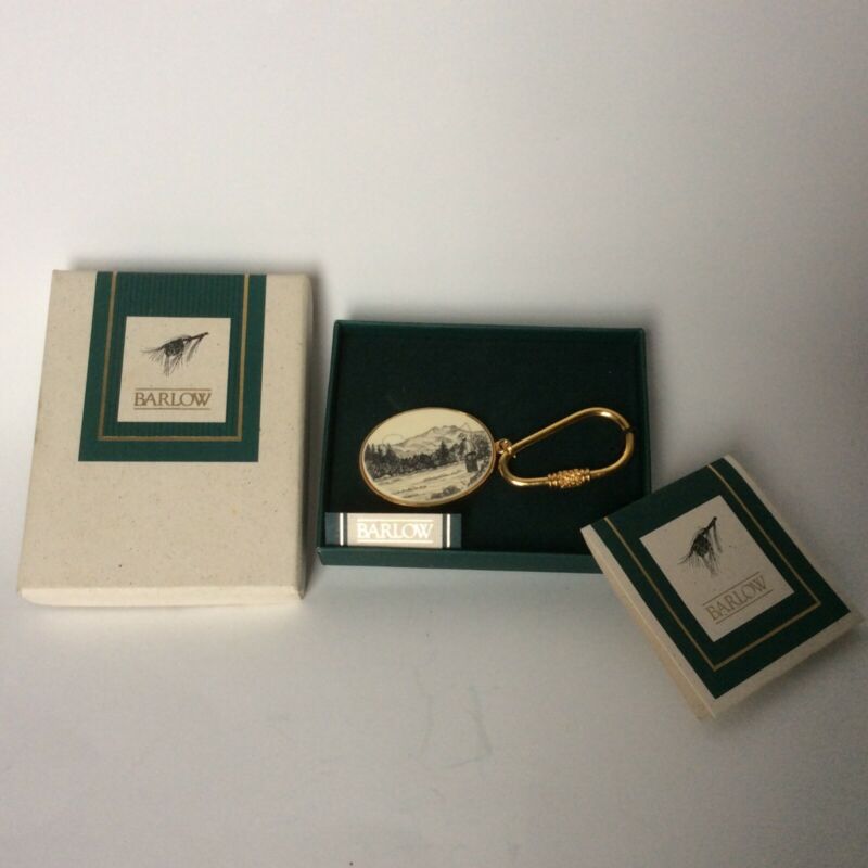 Title (ebay affiliate link): Vintage Signed Barlow Gold Tone Key Ring Chain Scrimshaw Fly Fishing