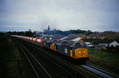 Title (ebay affiliate link): 35MM SLIDE ORIGINAL +COPYRIGHT ENG ELE TYPE 3 CLASS 37 RAIL FREIGHT RED X 2 1987