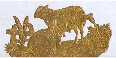 SHEEP IN MEADOW, GOLD FOIL ON LIGHT CARDSTOCK, c1890s