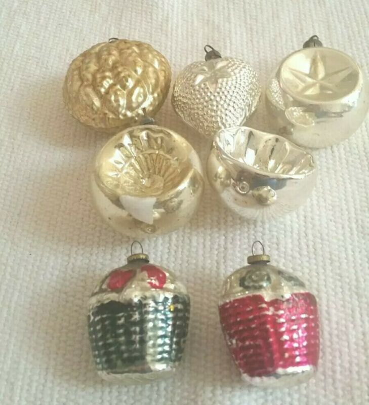 Vtg 7 Lot Mercury Glass Christmas Ornaments