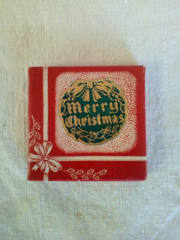 Vintage Christmas Seals Box Wreath Gold HOLIDAY Early RESERVE MR BUFFALO MAN