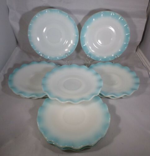 Title (ebay affiliate link): Vintage Saucers Set 9 Hazel Atlas 5.5" Turquoise Crinoline Ripple Ruffle 1950s