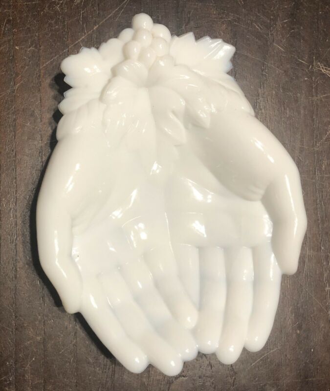 Vintage Milk Glass Open Hands Trinket Dish Grapes White Westmoreland Soap Dish