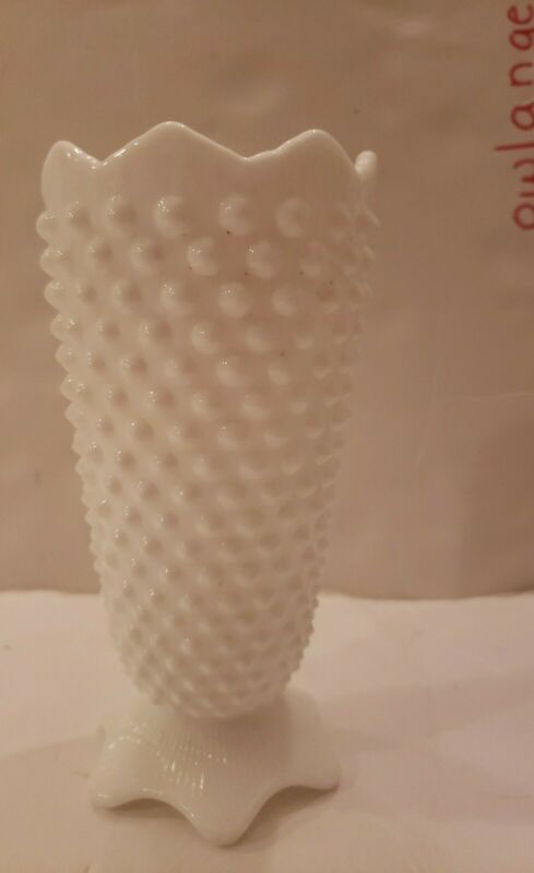 BEAUTIFUL Vintage White Milk Glass-Hobnail-7" Footed Vase