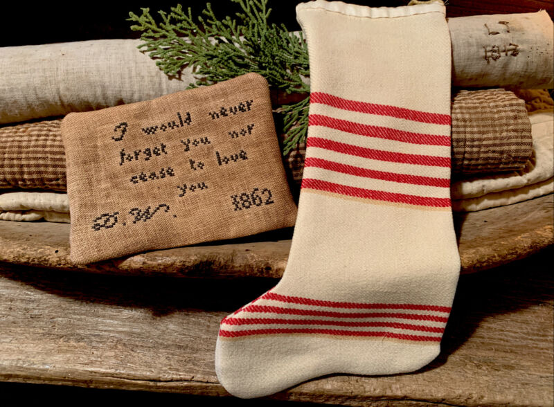 Title (ebay affiliate link): Primitive Christmas Stocking From Early Cream & Red Lindsey Woolsey Blanket
