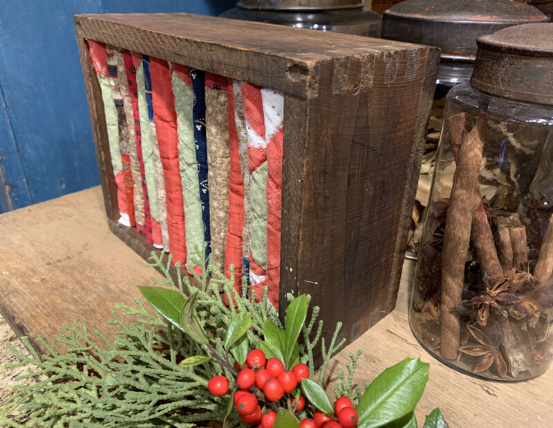 Title (ebay affiliate link): Wooden Dovetail Box From Old Textile Mill With Early Red Green Quilt Scrapes
