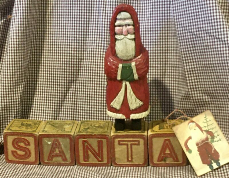 Title (ebay affiliate link): Antique ABC illus Litho Toy Wood SANTA Blocks w Carved Santa Figure -FOLK ART