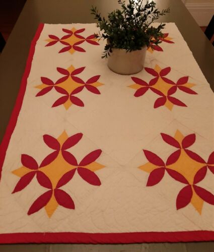 Title (ebay affiliate link): Antique Cutter Quilt Piece ~ Fabulous Quilting ~ Red and Cheddar ~ 39"+ x 25"+