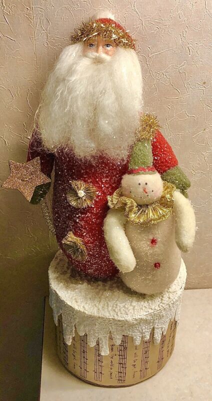 Primitive Santa Claus w Snowman Figure
