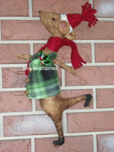Primitive Skating Christmas Mouse Doll Winter Decoration Country