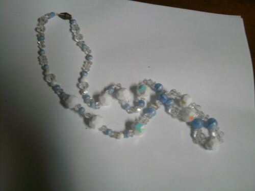 Title (ebay affiliate link): Vintage Blue & Crystal Glass Bead Necklace Mixed with White Milk Glass Beads