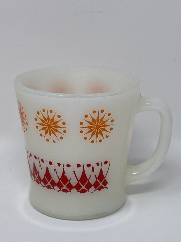 Title (ebay affiliate link): Vintage FIRE KING Anchor Hocking MILK GLASS Mug Cup RED Orange Design