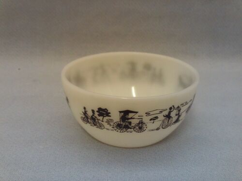 VINTAGE IVORY 5" THIN 16oz. FIRE-KING "TRANSPORTATION" DECAL CEREAL BOWL~ BLACK