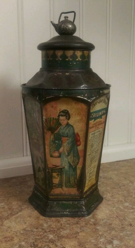 Title (ebay affiliate link): Vintage Tin Triumph-Thee-Mischung No. 1 Grinder Canister Dispenser