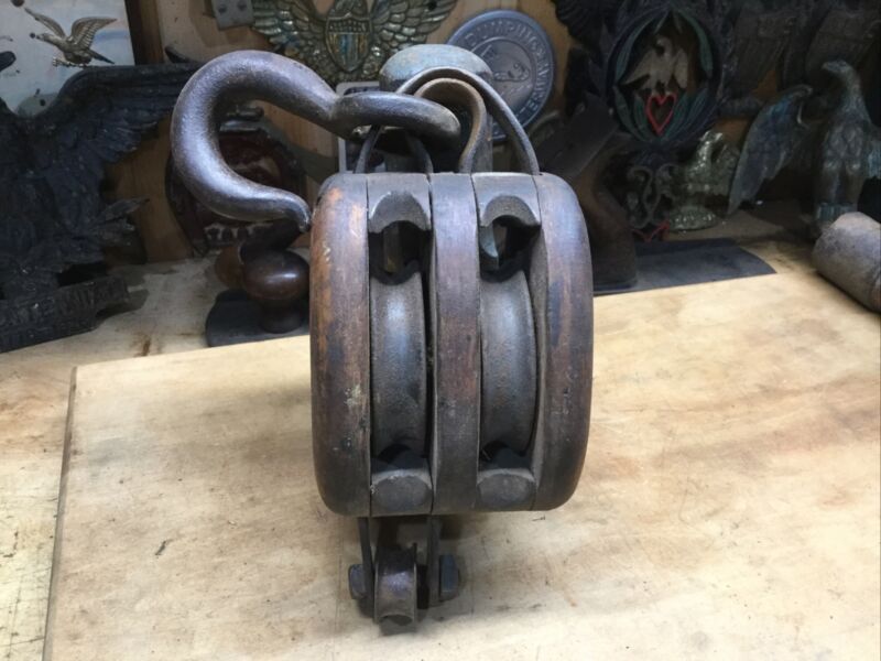 Title (ebay affiliate link): Vintage Wooden Barn Pulley Block & Tackle Farm Rigging Tool