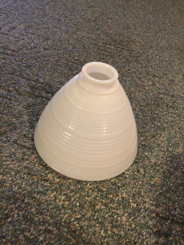 VINTAGE 8" WHITE MILK GLASS WAFFLE AND RINGS TORCHIERE DIFFUSER LAMP SHADE GLOBE
