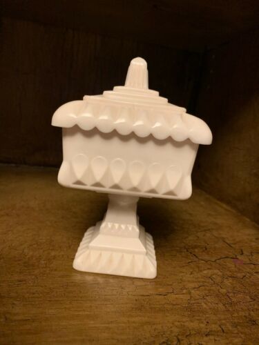 Vintage Milk Glass Pedestal Square Candy Dish with Lid