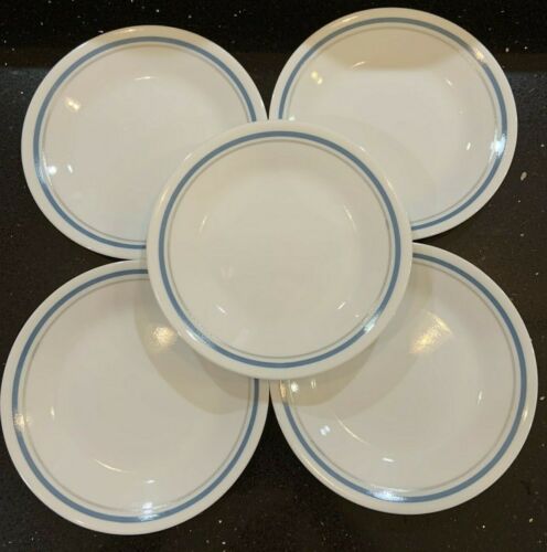 Title (ebay affiliate link): Vintage Corelle INDIGO Set of 5 Bread/Dessert Plates 6 3/4" Blue Gray Rim Band