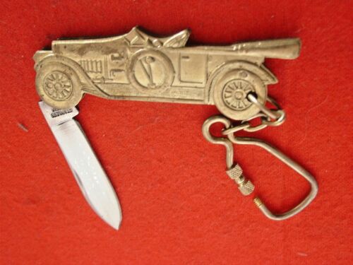 Unbranded Brass 3" Antique Automobile Auto Figural Key Chain Knife MINT