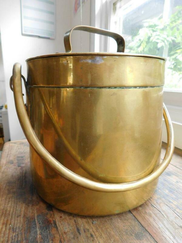 Lovely Tall Antique Brass Saucepan Cooking Pot & Lid French 1800s