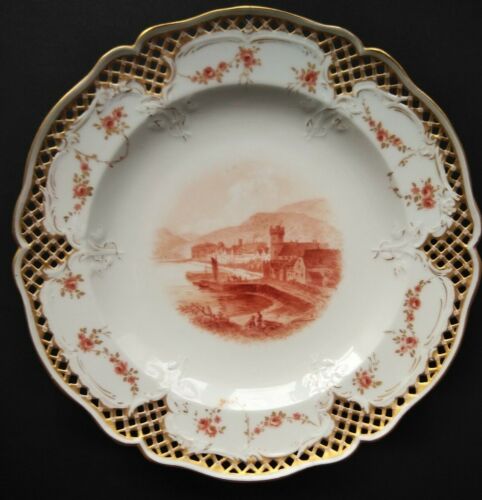 KPM berlin Roses & Gold Reticulated Plate 1900 "Rudesheim"