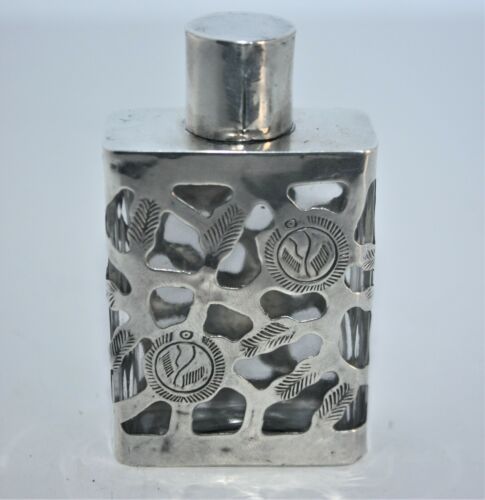 Vintage Sterling 925 Silver Overlay Perfume Bottle Made in Mexico Eagle Stamp 53