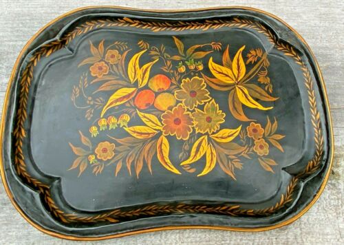 Title (ebay affiliate link): Vintage Tole Toleware Tray dated 12/25/55 Black with Gold Orange Red Floral