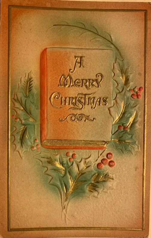 Title (ebay affiliate link): Christmas Postcard Vintage with Holly and Christmas Book , unposted. Edwardian