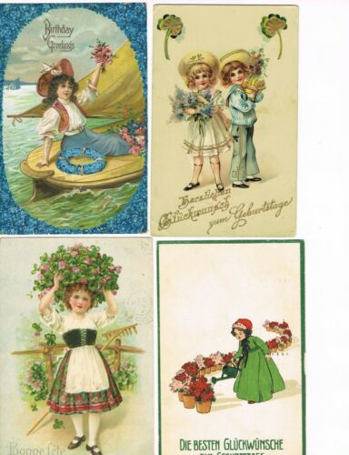 LOT of 4 ANTIQUE EARLY 1900s BIRTHDAY / GREETING Postcards (#1101A)