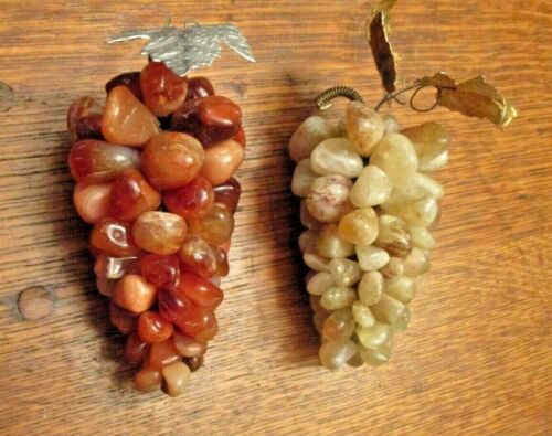 Pair Stone Marble Alabaster Grape Clusters Fruit Decor Vintage