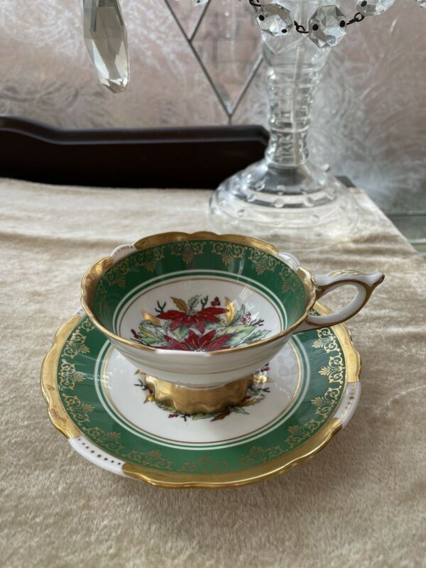 Title (ebay affiliate link): Vintage Royal Stafford Pointsettia Cup & Saucer Christmas Holiday Decor