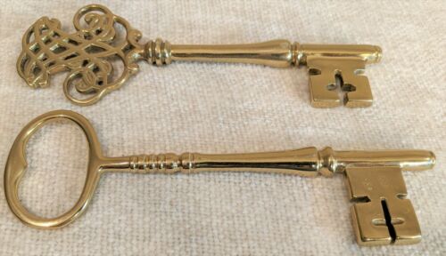 Title (ebay affiliate link): Two Virginia Metalcrafters Brass Keys, 1 TJ Cipher & 1 Skeleton Key