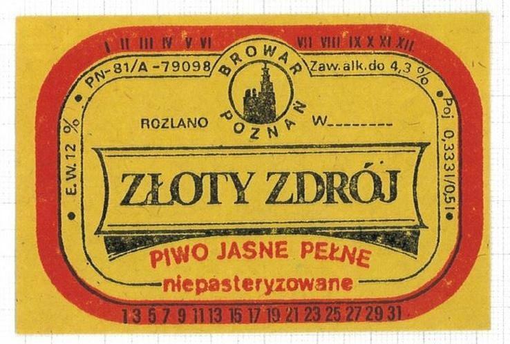 Title (ebay affiliate link): POLAND Browar Poznan Zloty Zdroj beer label C1715 041