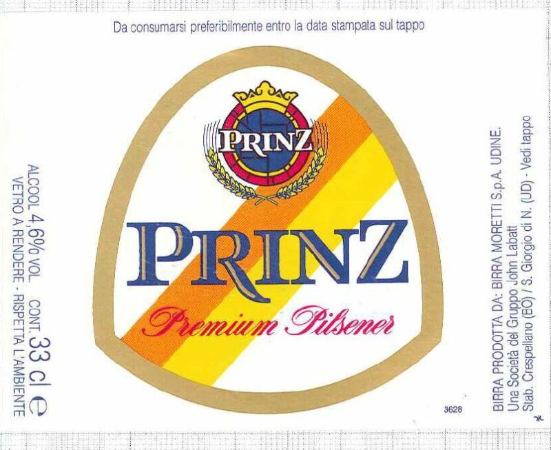 ITALY Birra Moretti,Udine PRINZ BRAU Pilsener 33CL beer label C1498