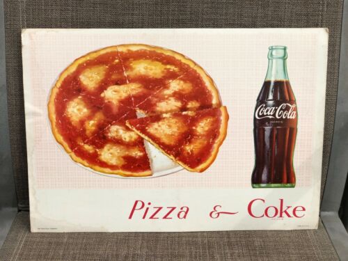 Title (ebay affiliate link): 1958 DRINK COCA COLA CARDBOARD PIZZA W/ Coca Cola BOTTLE
