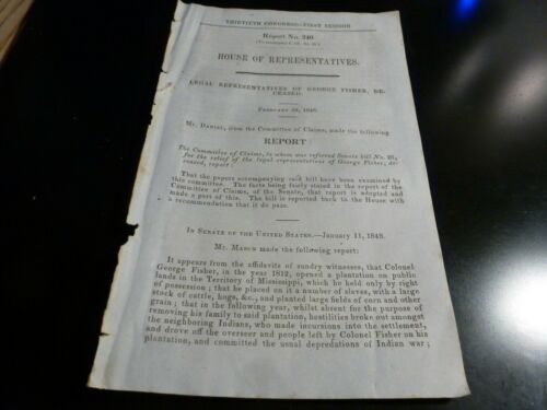 Title (ebay affiliate link): Government Report 1848 Relief George Fisher Mississippi Slaves Stores Indian War