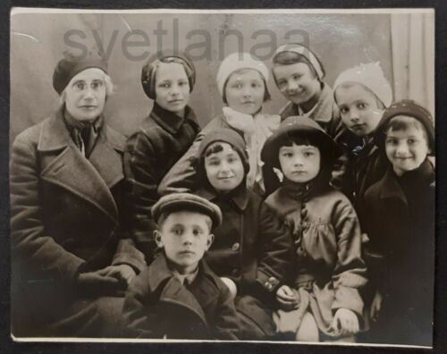 Title (ebay affiliate link): 30s Kids School Teacher Beret Pince Nez Cute little girls boy USSR antique photo
