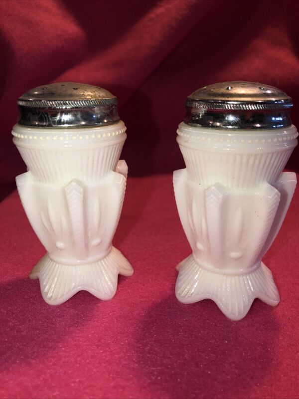 Title (ebay affiliate link): Vintage Fenton Old Virginia Glass Cactus Salt And Pepper Shakers Milk Glass