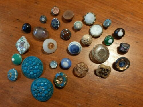 29 Unique Vintage Antique Glass Buttons Milk glass Candy cane Painted Porcelain