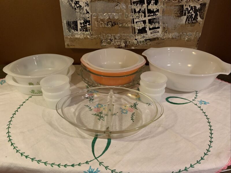 Lot Of 14 Vintage Glasbake Casseroles, Bowls, Pie Pan