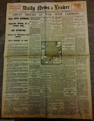 1914 Newspaper OUTBREAK of World War I Vintage Retro Antique II Old Army Navy UK