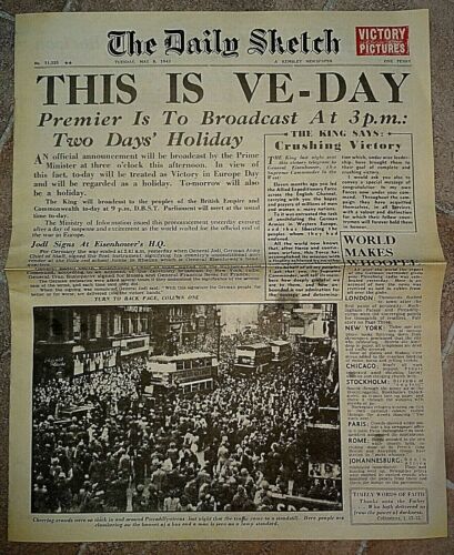 1945 Newspaper VE DAY Daily Sketch Old Antique Victory Winston Churchill WW2 War