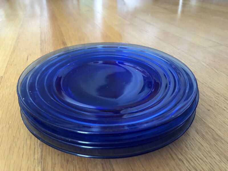 Title (ebay affiliate link): Lot of 4 Vintage Hazel Atlas Cobalt Blue 8" Luncheon Plates Set - Moderntone