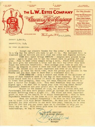 Title (ebay affiliate link): L. W. Estes Indian Herbs Compound Letterhead, Cover & Sample Washington, DC 1907