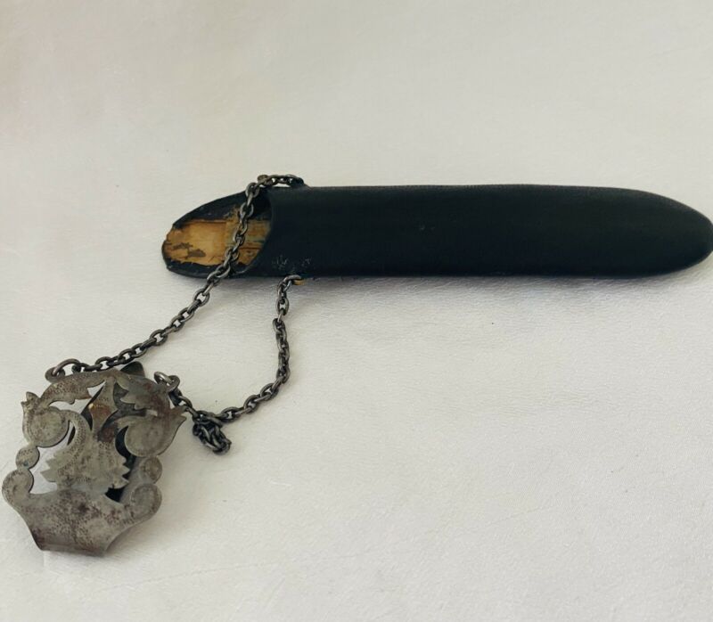 ANTIQUE Brown CHATELAIN METAL ART PIN Case