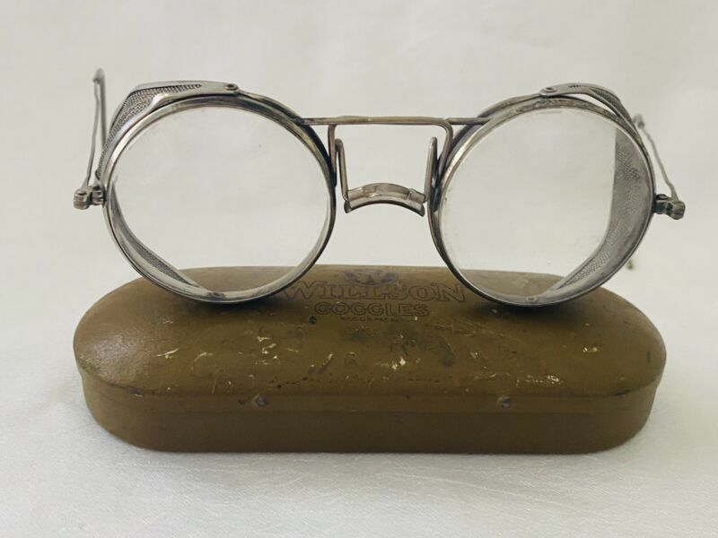 Title (ebay affiliate link): VINTAGE Silver Tone / White Metal GOGGLES w/ Mesh Shields WILLSON Metal Case
