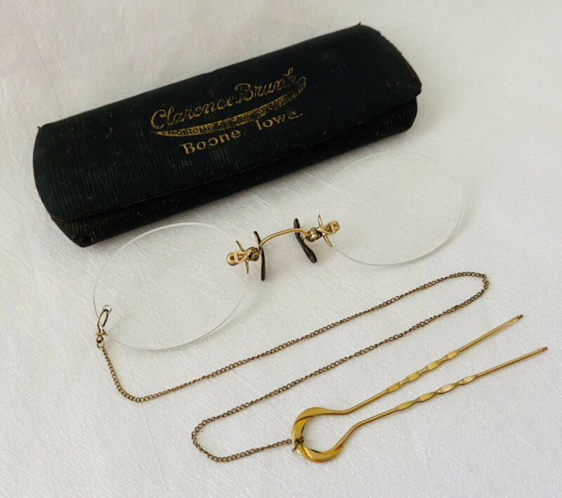 Title (ebay affiliate link): Antique Gold Tone / GOLD Filled? Spring Bridge Pince Nez Spectacles with Chain
